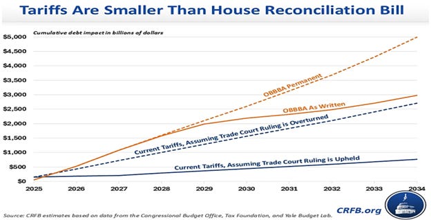 The Senate can afford only three defections, and cries of “It’s immoral, it’s wrong” were already showing up before the Trump-Musk blow-up. In the House, the obstructors were focused on more spending cuts. In the Senate, there are two main factions: those wanting deeper cuts on social program spending—including a contingent now demanding $200B in cuts to MediCARE—and those who are concerned about taking away healthcare benefits. History says either option is a terrific way to lose in the 2026 elections and with Joni Ernst’s timely assistance, Chuck Schumer—momentarily un-napped—is now calling the OBBBA the “Well, We’re All Going to Die Act.”